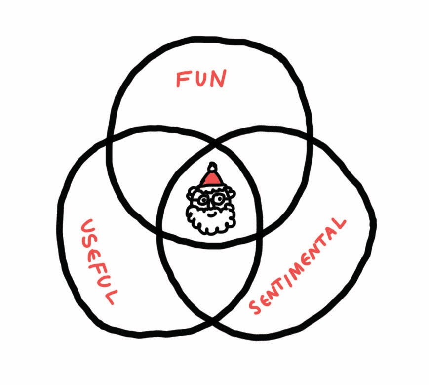 When deciding what to give someone for Christmas (or any other present-giving holiday) keep in mind this golden rule: All gifts fall into one of this 3 categories - useful, fun and/or sentimental.