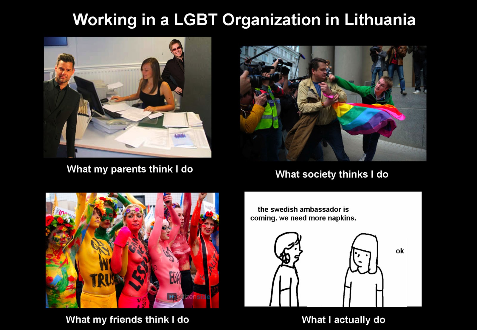 Sometimes people ask me what do I exactly do there and as much as I would like to answer, "oh, I'm fighting homophobia in the baltics", because it sounds like I'm kicking ass and it's cool, the truth is that, in a day to day basis, most of what I do is normal office work.